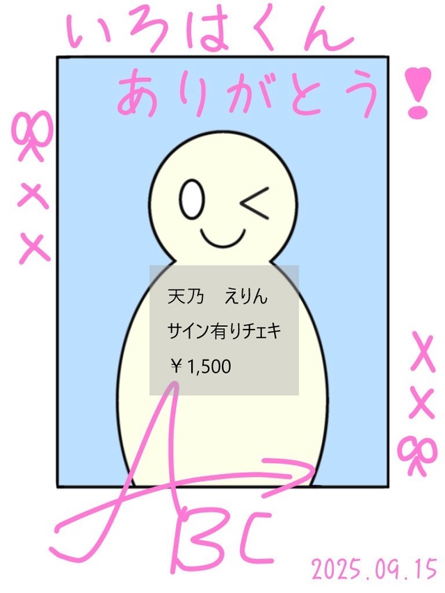 天乃えりんのサイン入りチェキです。 1枚ずつ直筆でサインを入れてお届けいたします! こちらのチェキは ・ペンの色は1色まで ・塗りつぶしやシールなどの装飾なし ・メッセージは一言まで のシンプルな仕様となります。 備考欄に書いて欲しい名前の記入をお願いいたします。